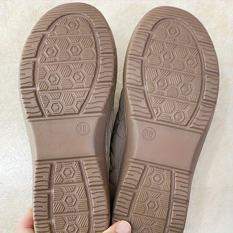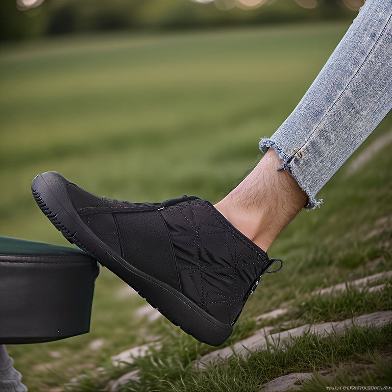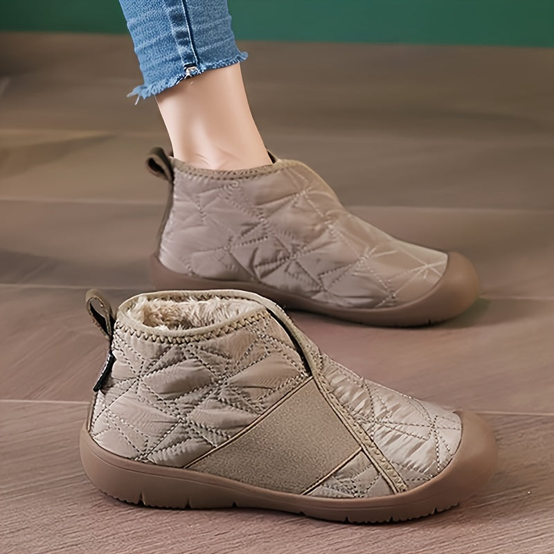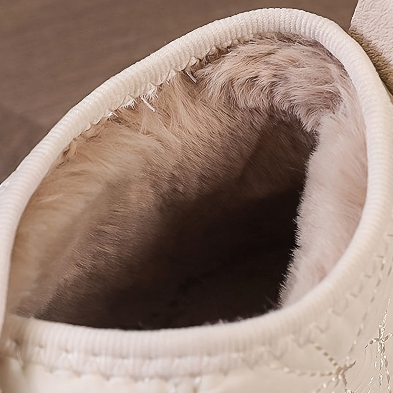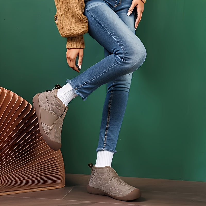 Άνετα γυναικεία μποτάκια χειμωνιάτικα μέχρι τον αστράγαλο με απαλό γουνάκι εσωτερικά για ζεστασιά και άνεση. Σχεδιασμένα για εύκολη εισφόρα χωρίς δέσιμο, με μαλακή αντιολισθητική σόλα και μονόχρωμο, κομψό σχέδιο.