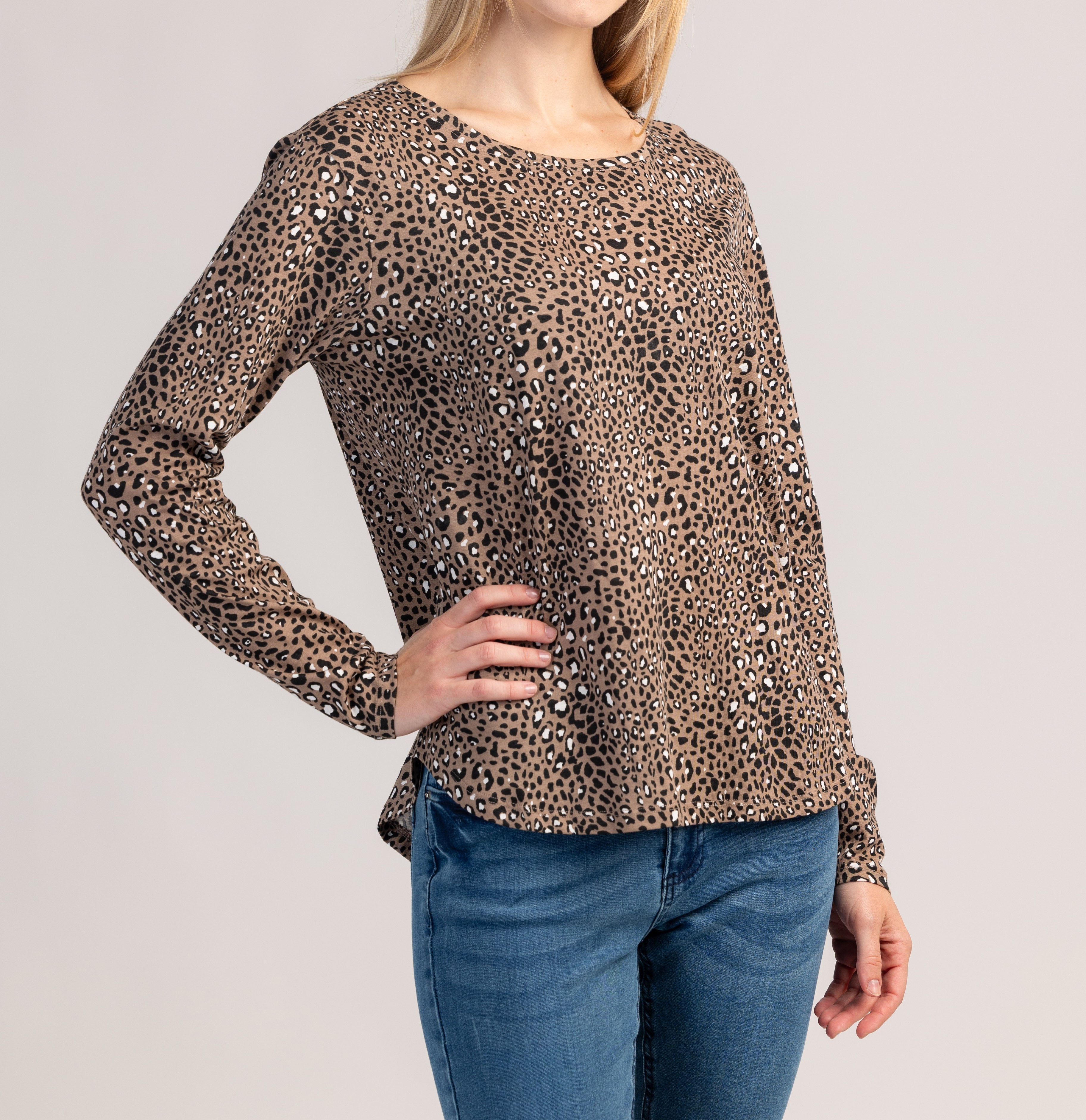 Ένα βαμβακερό μπλουζάκι με μακριά μανίκια που συνδυάζει άνεση και μοντέρνα εμφάνιση για καθημερινή χρήση. Το απαλό, αναπνεύσιμο ύφασμα αγκαλιάζει άνετα το δέρμα, ενώ η κλασική κοπή εξασφαλίζει τέλεια, απεριόριστη εφαρμογή.